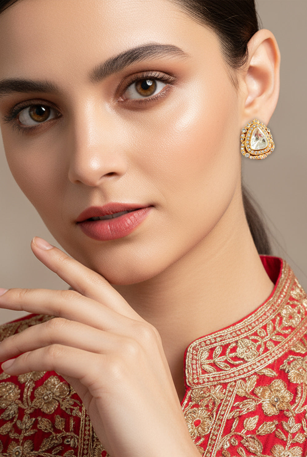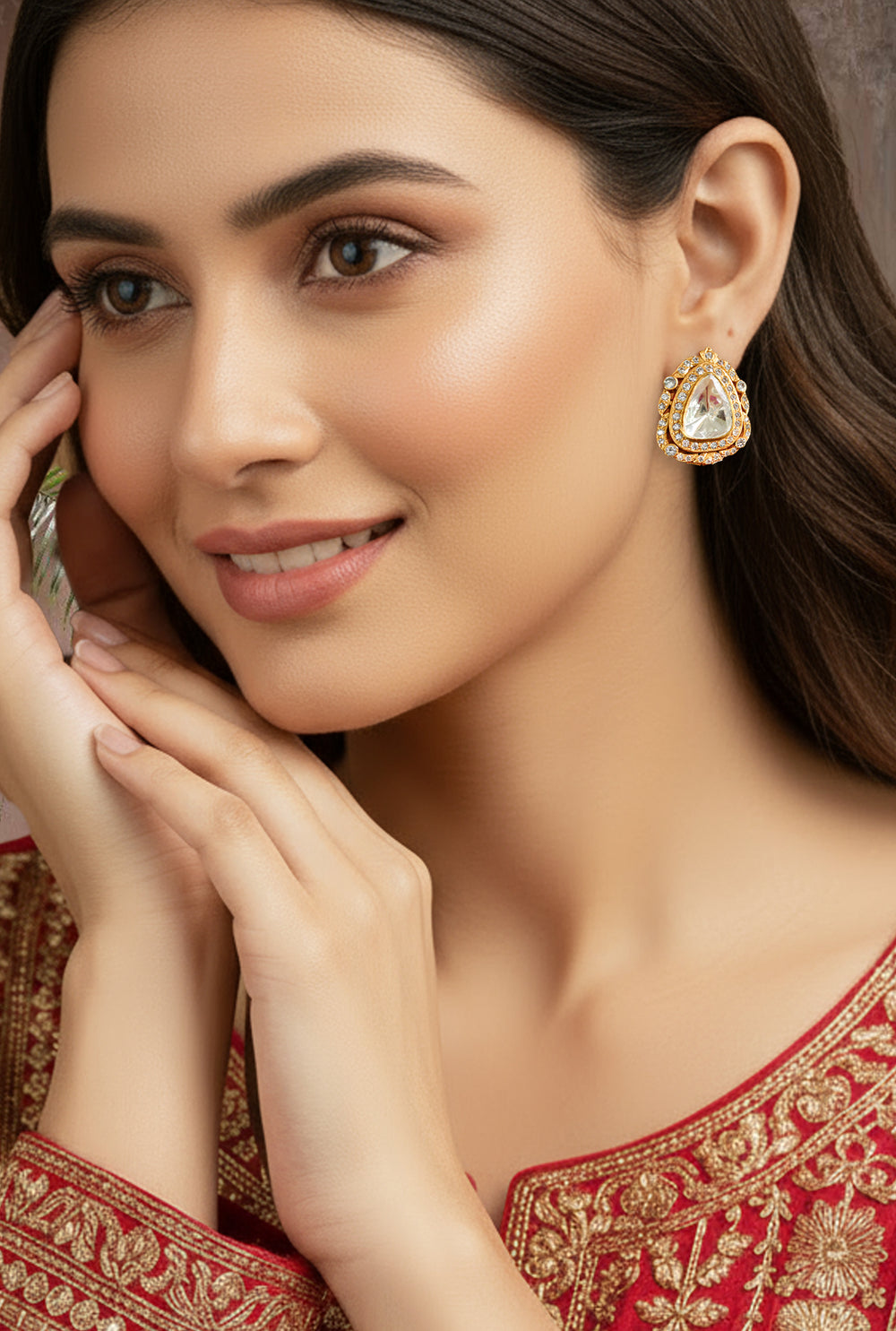 Elevate your look with the majestic charm of Vanya Tops — a bold expression of Grace, Heritage, and Luxury. Handcrafted with precision, this masterpiece features a stunning pear-shaped Polki stone at its heart, framed by dazzling Cubic Zirconia.